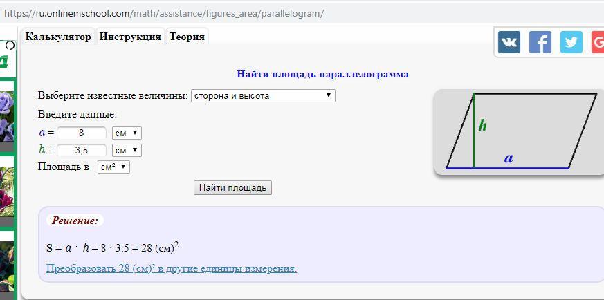 Висота паралелограма дорівнює 3,5 см, а сторона, до якої вона проведена ,-8 см . Знайдіть площу паралелограма