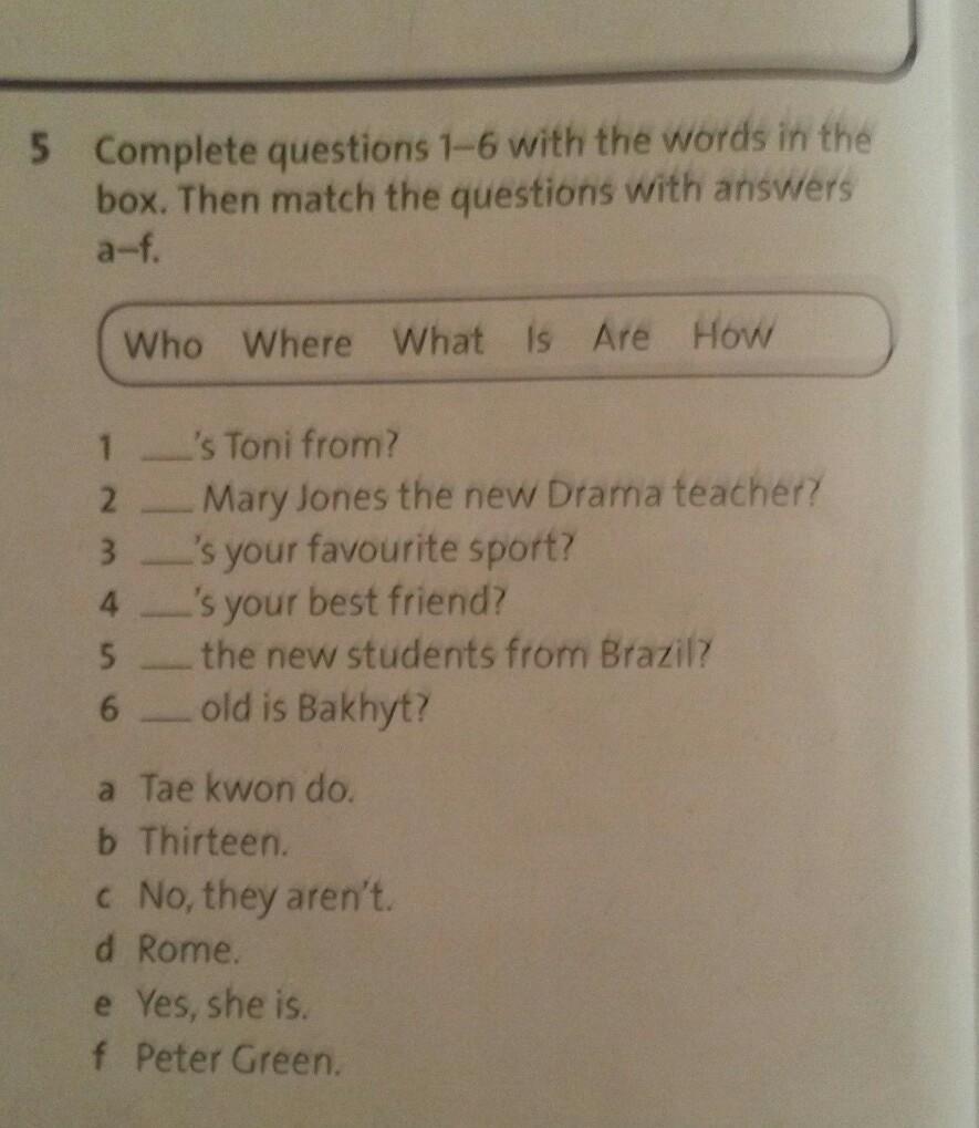 1. Where 2. Is 3. What 4. Who 5. Are 6. How