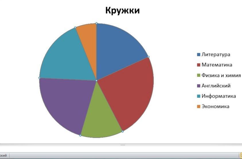 по результатам опроса из 36 учеников 6 ходят на кружок литературы 8 учеников на математику 4 на физику и химию 7 на английский 6 на информатику и два ученика ходит на кружок экономики по этим данным Нарисуйте круговую диаграмму отражающую посещение кружков учениками