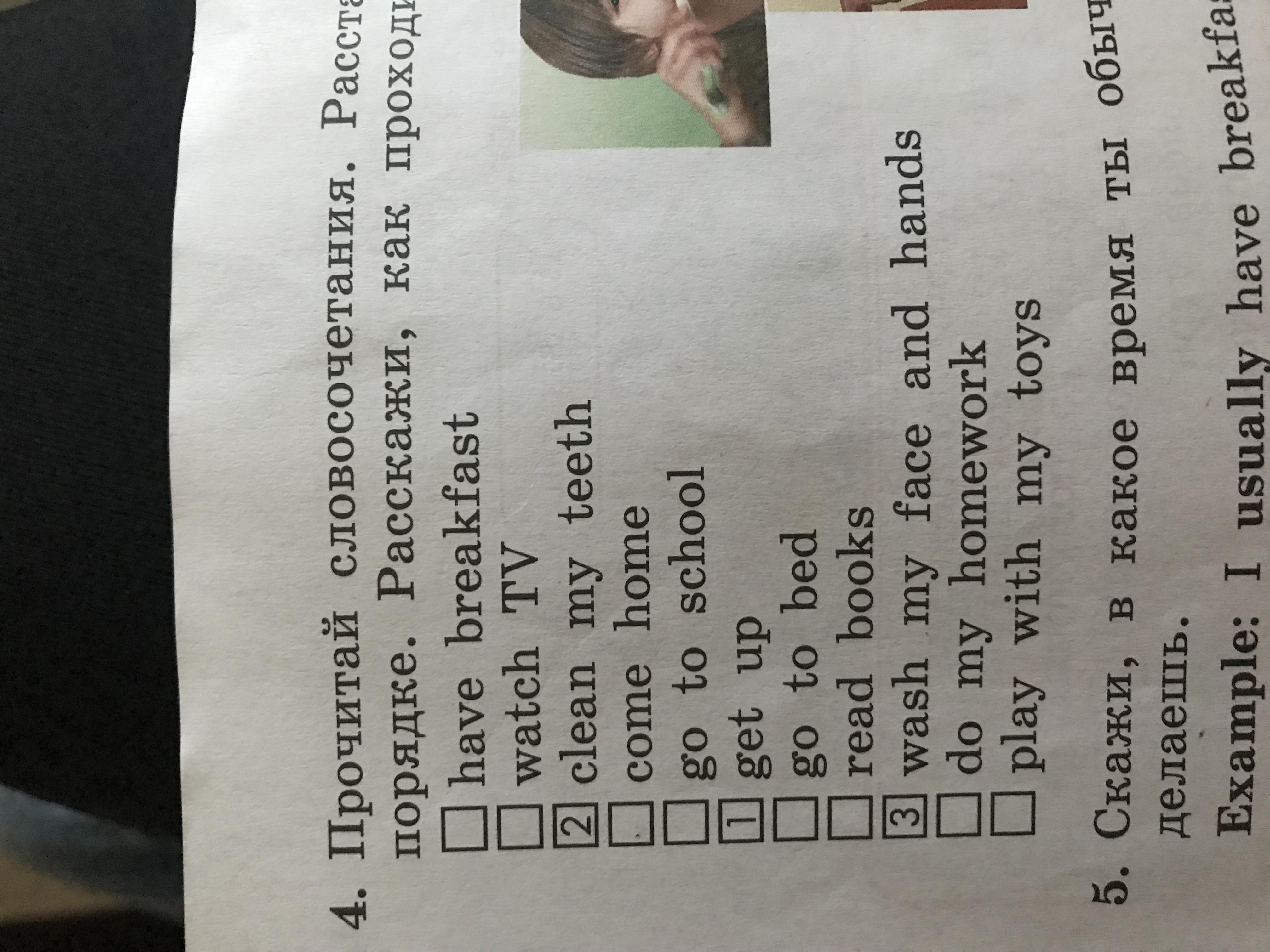 every weekday I get up at 7 o'clock. then I clean my teeth, wash my face and have breakfast. after that I go to school. I come home at 1 o'clock. after school I have a rest. I play with my toys, read books or watch tv. at 7 o'clock I do my homework. at 10 o'clock I go to bed.