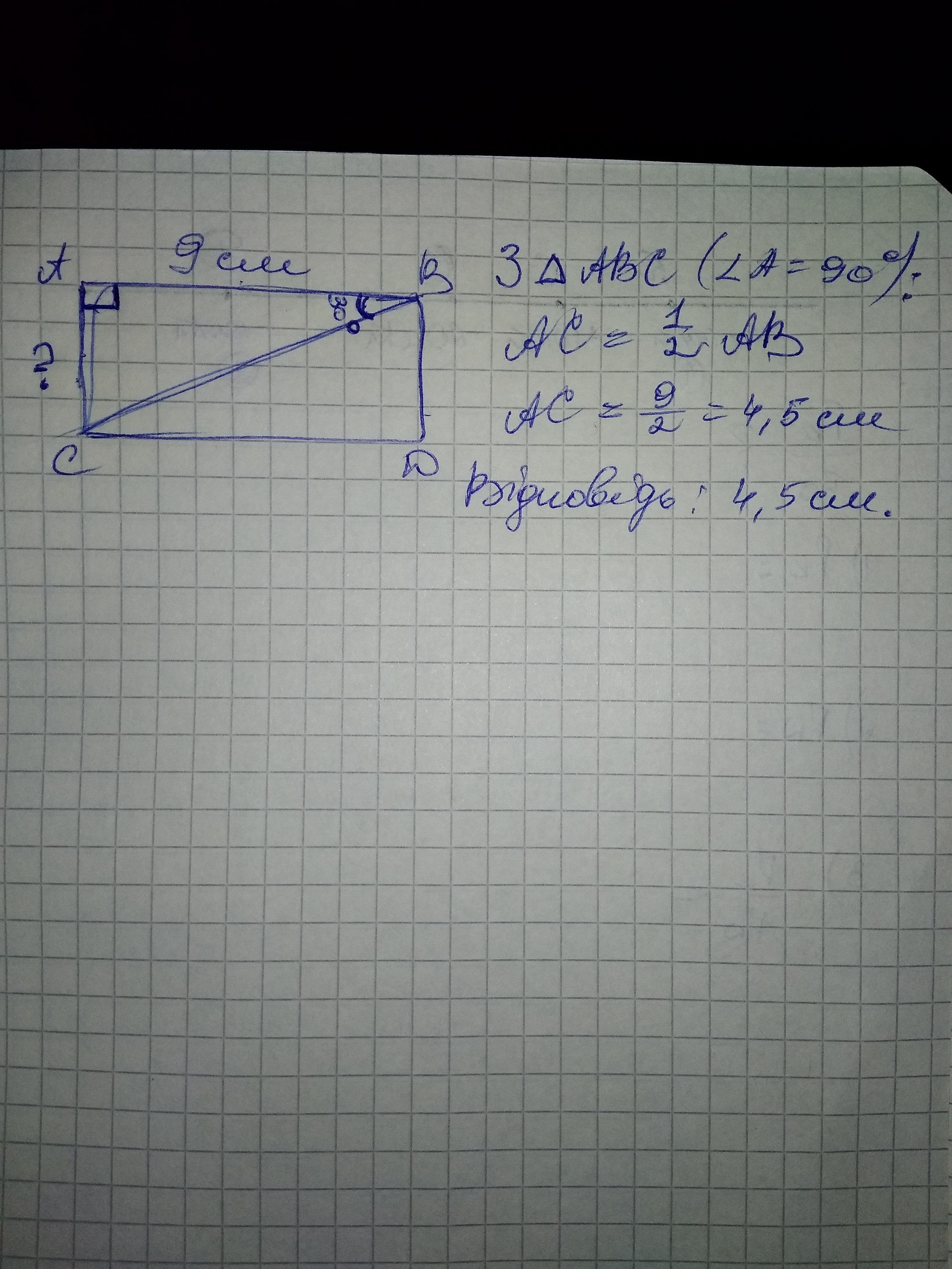 якщо А- 30градусів,то АС=1/2АВ=4,5см
