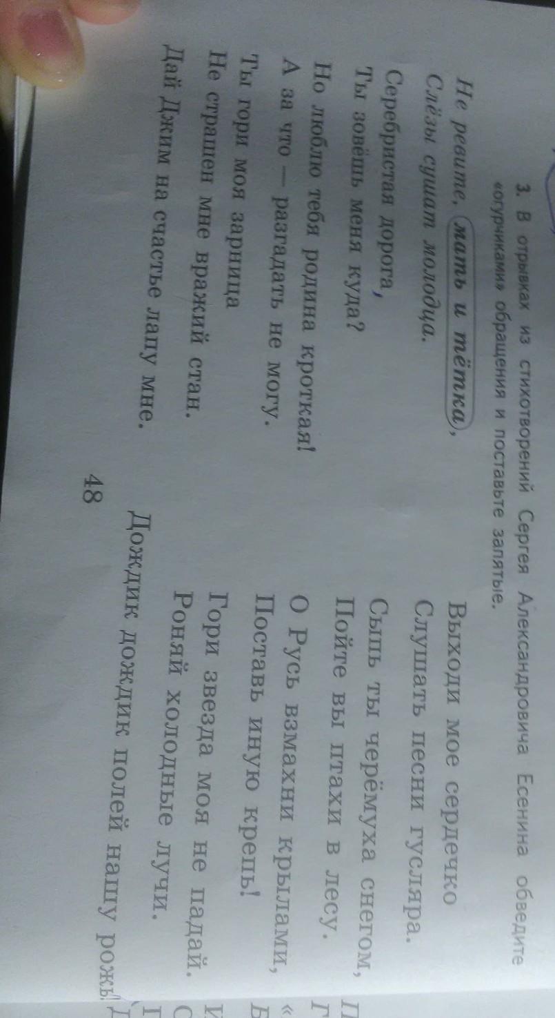 Но люблю тебя, родина кроткая! Ты гори, моя зарница, не страшен мне вражий стан. Дай, Джим, на счастье лапу мне. Выходи, мое сердечко, слушать песни гусляра. Сыпь ты , черемуха , снегом, пойте вы , птахи, в лесу. О Русь, взмахни крылами, поставь иную крепь! Гори ,звезда моя, не падай.