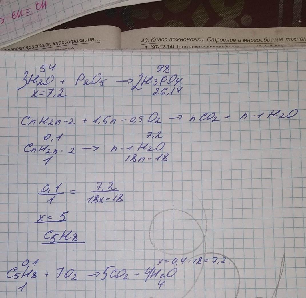Пары воды, которые образовались при сжигании 0,1 моль ацетиленового углеводорода, были поглощены фосфор (V) оксидом. При этом образовалось 26,14 г ортофосфорной кислоты. Определить формулу соединения.