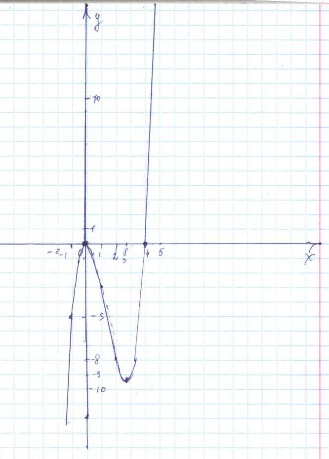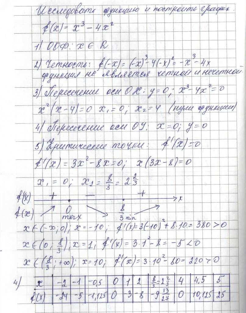 Исследовать с помощью производной функцию и построить график f(x)=x^3-4x^2