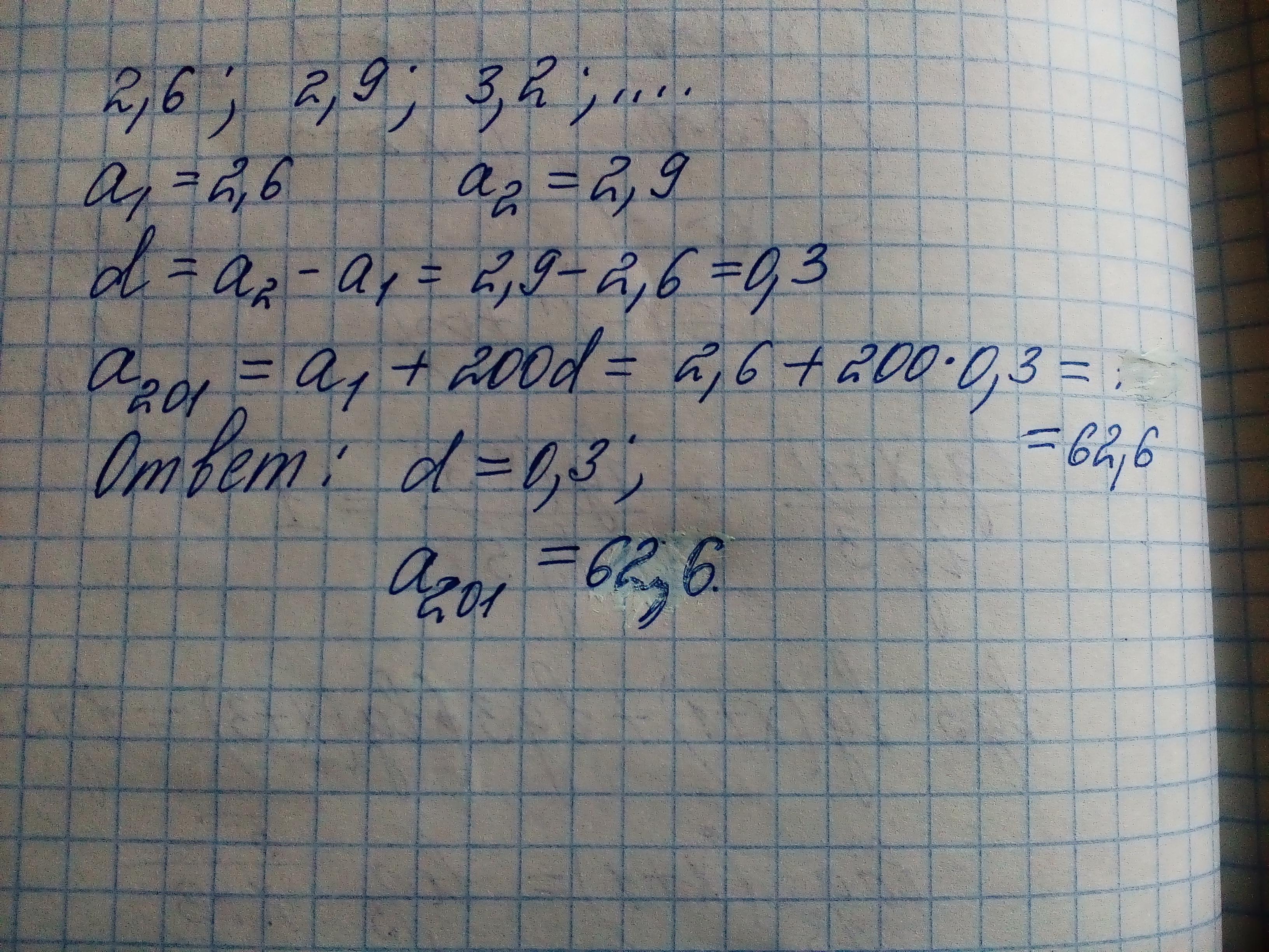 a201=a1+200d=2.6+200*0.3=2.6+60=62.6