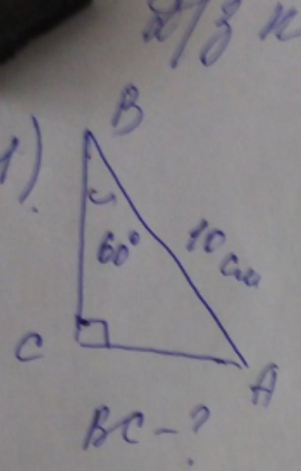 5 см,так как ВС лежит напротив угла 30градусов ,отсюда следует ,что ВС равен половине гипотенузы