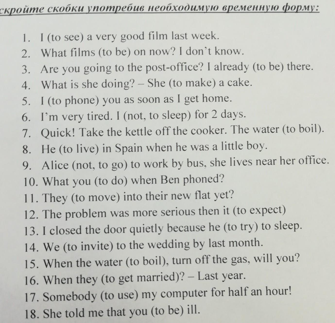 Раскройте скобки употребив необходимую временную форму