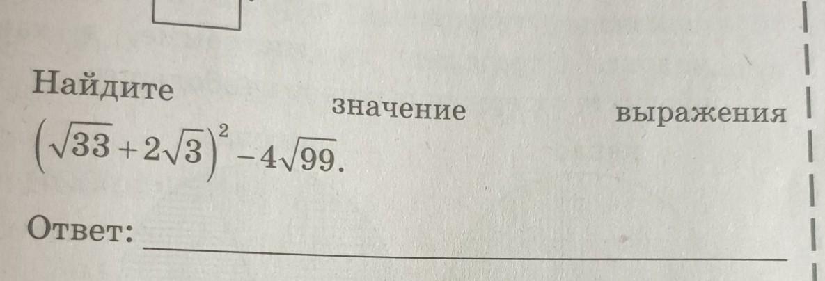 (√33)²+2*2√3*33+(2√3)²-4√99= 33+4√99+(√12)²-4√99=33+12= 45