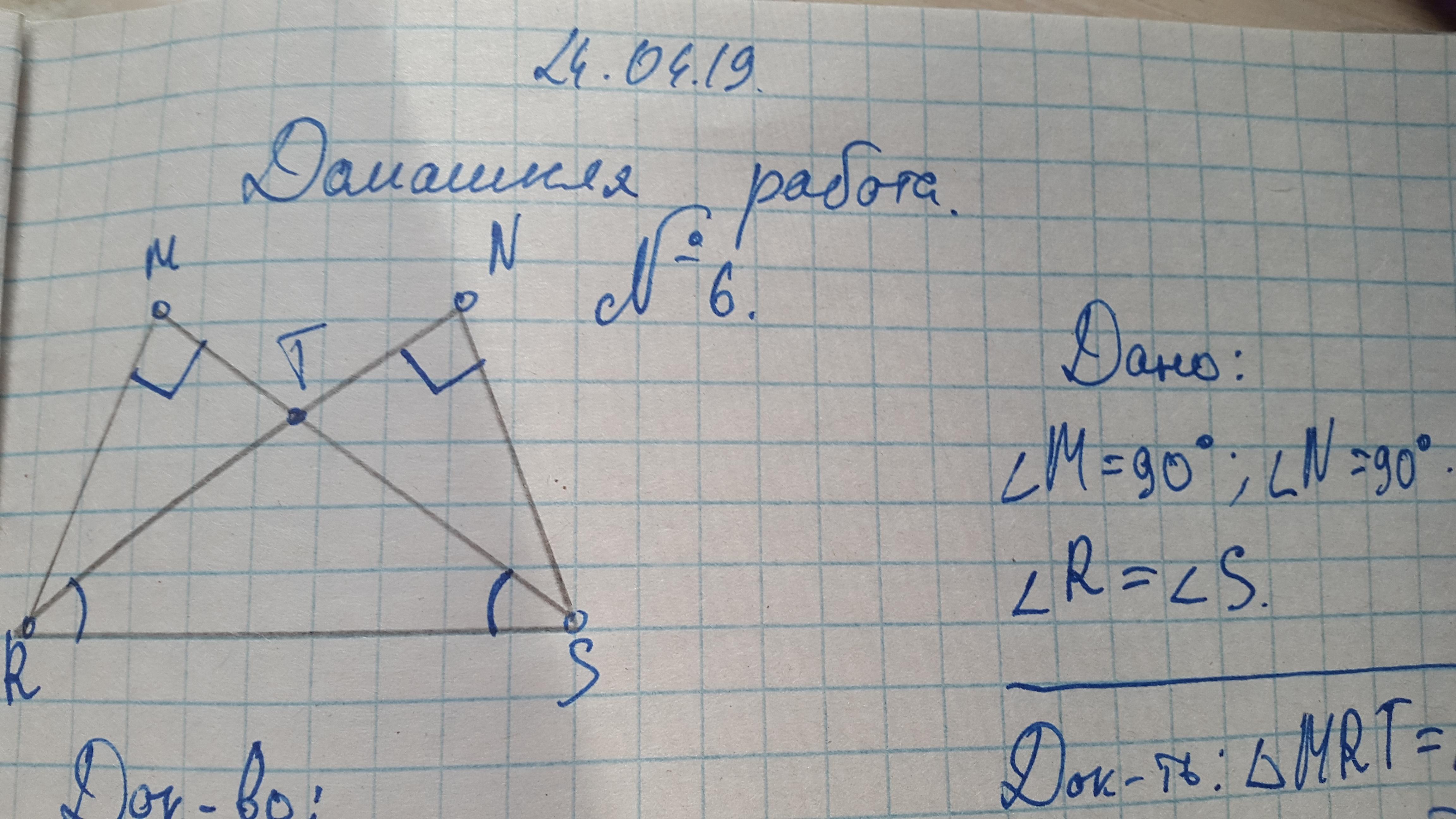 Тогда MTR=NTS(по катету и противолежащему остром углу)
