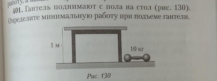 гантель поднимают с пола на стол. определите минимальную работу гантели при подъёме гантели