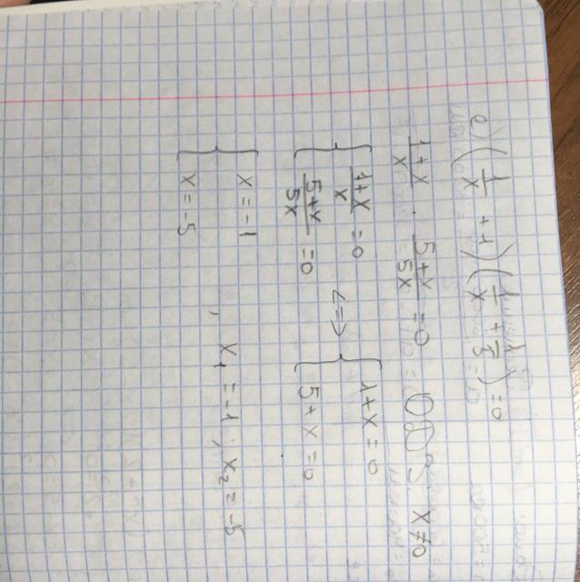 Е) одз: х не равен 0; х1=-1; х2=-5