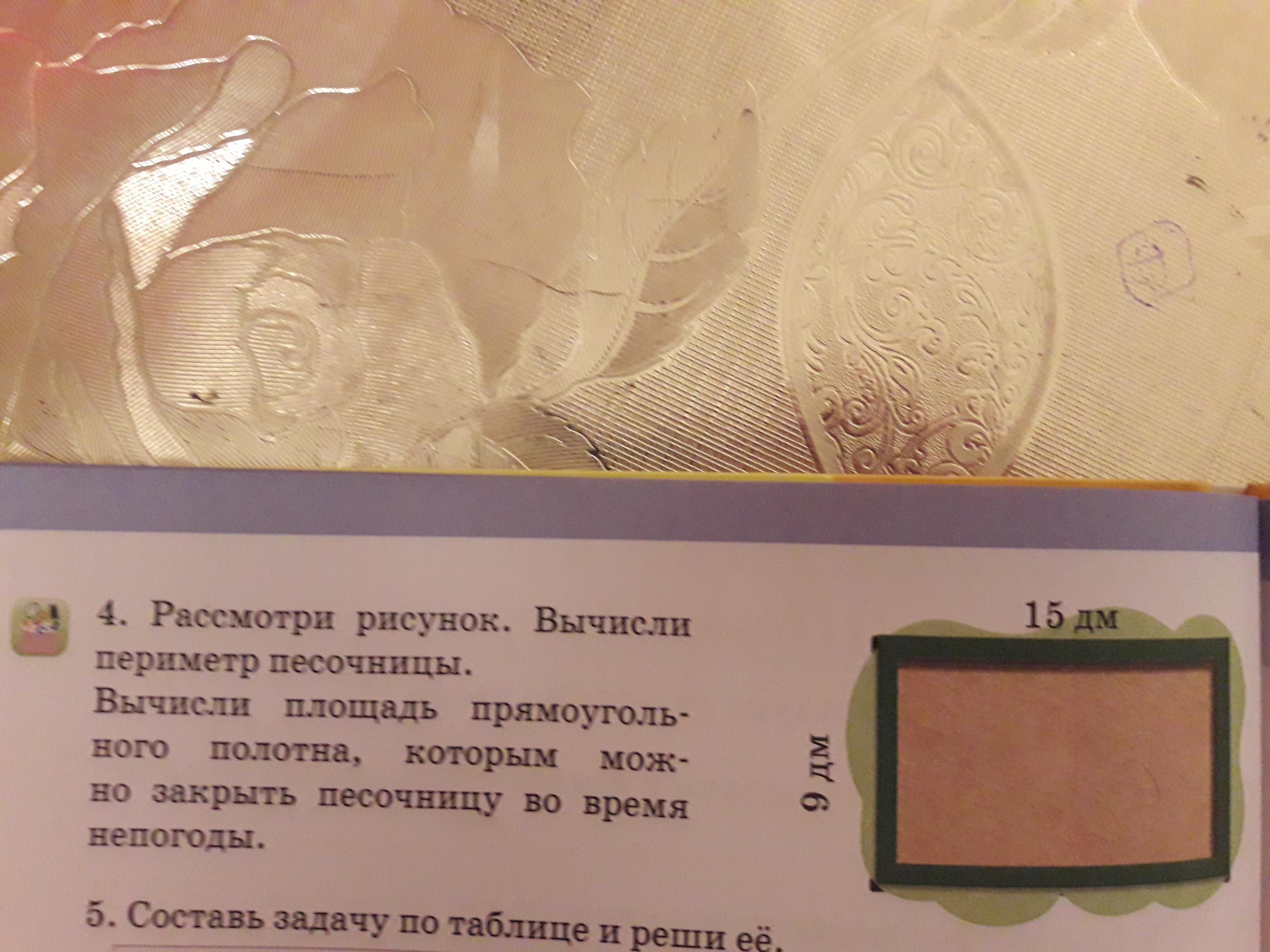 Рассмотри рисунок.Вычисли периметр песочницы.Вычисли площадь прямоугольного полотна,которым можно закрыть песочницу во время непогоды.