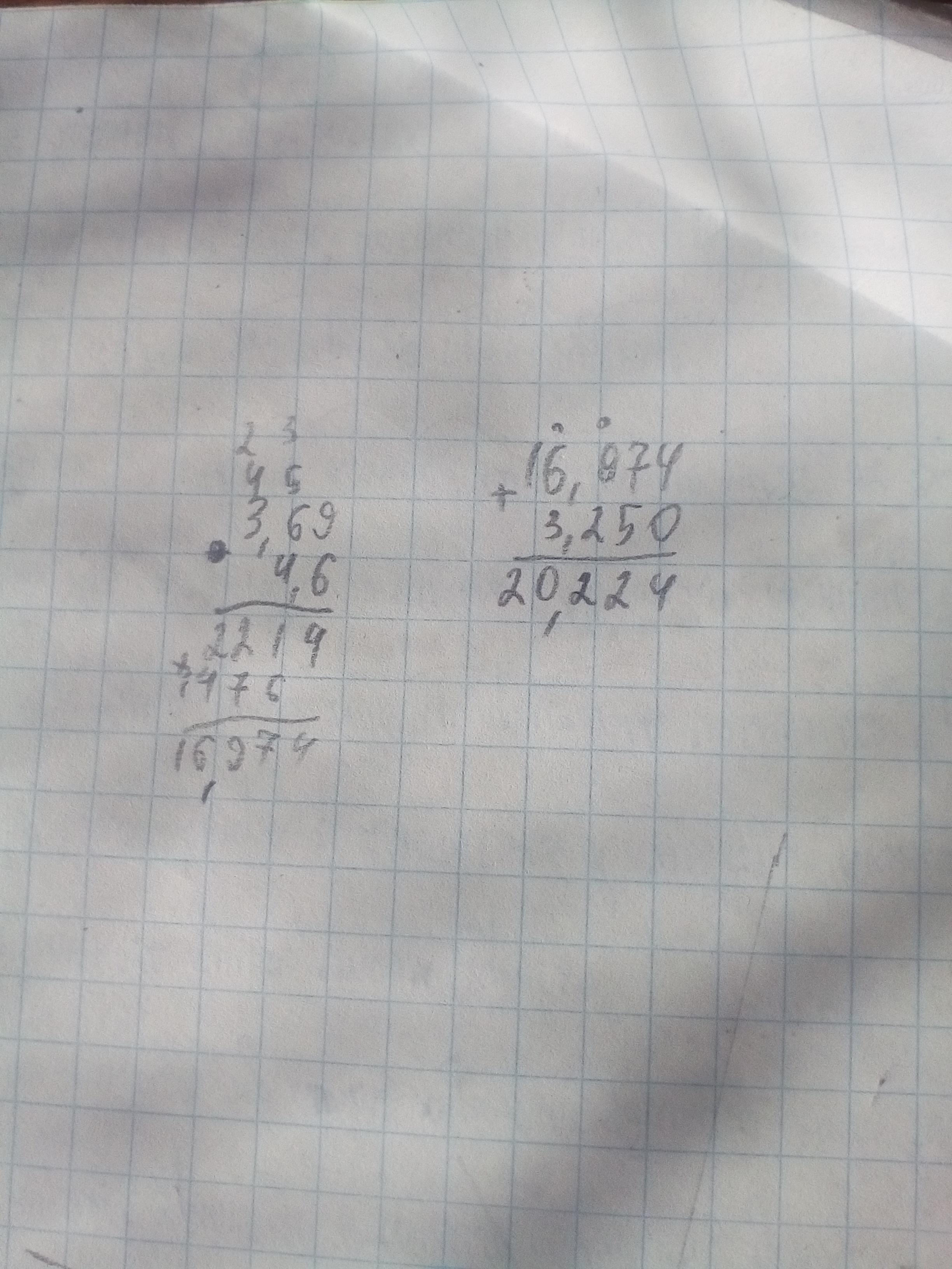 Вот решение: первым делом умножение, потом сложение. И фото столбиком. Много раз страница перезагружалась, из-за чего ответ не мог написать.