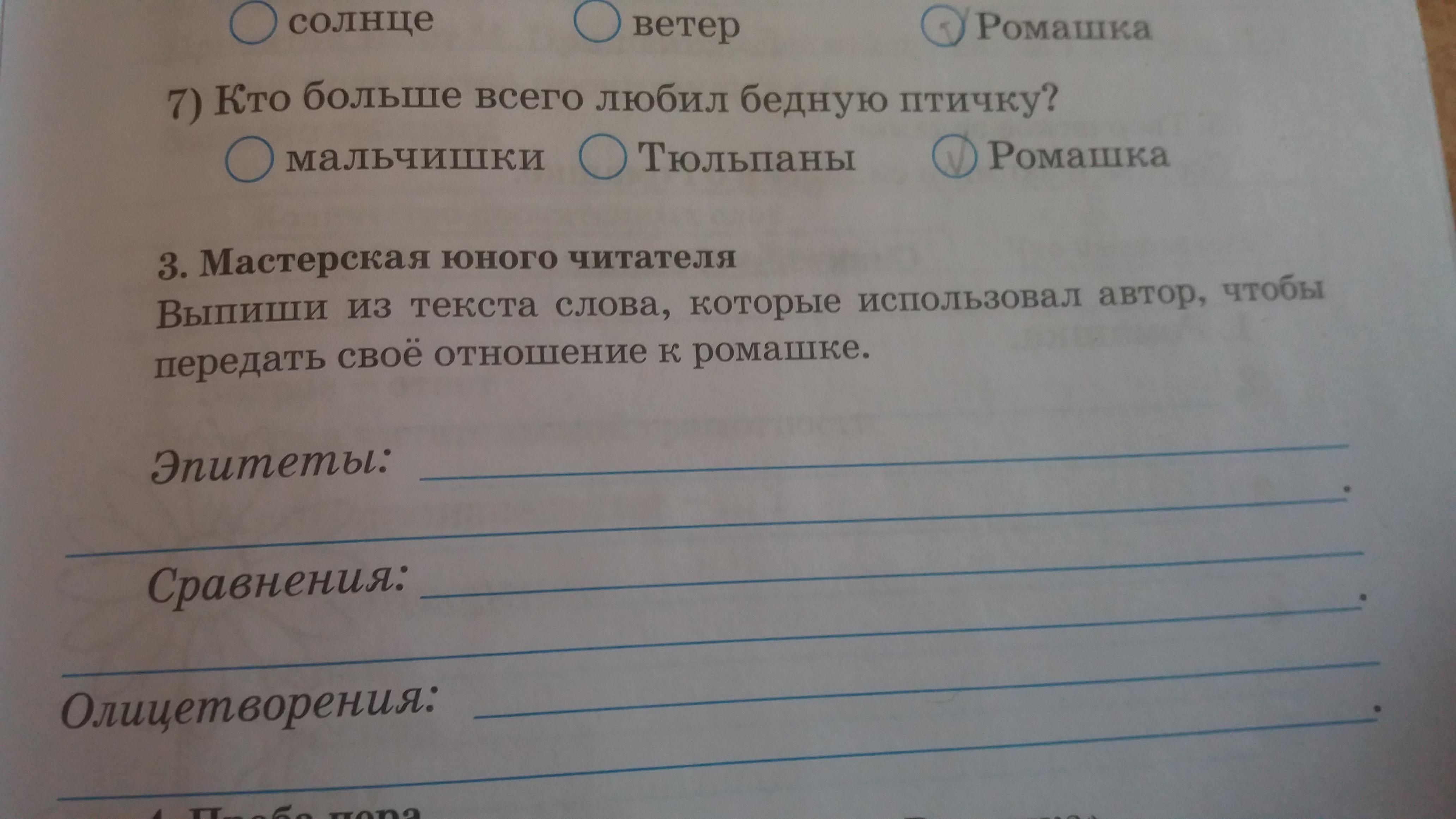 Выпиши из текста слова,которые использовал автор,чтобы передать своё отношение к ромашке.