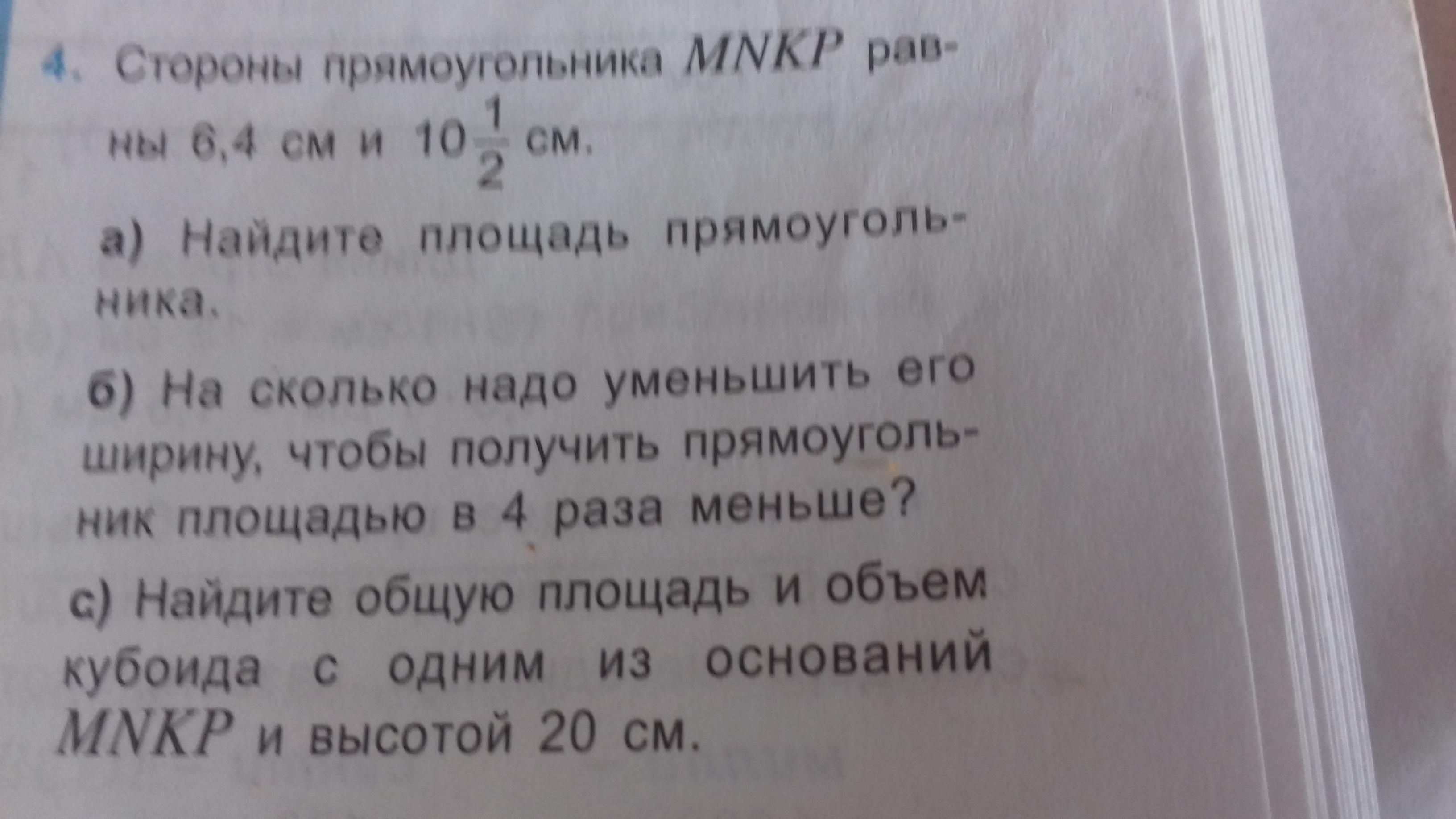 2) Если же в -новая ширина, а длина а=6,4 см, то новая ширина равна 16,8/6,4=2,625/см/, тогда ширину надо уменьшить на 10,5-2,625=7,875/см/