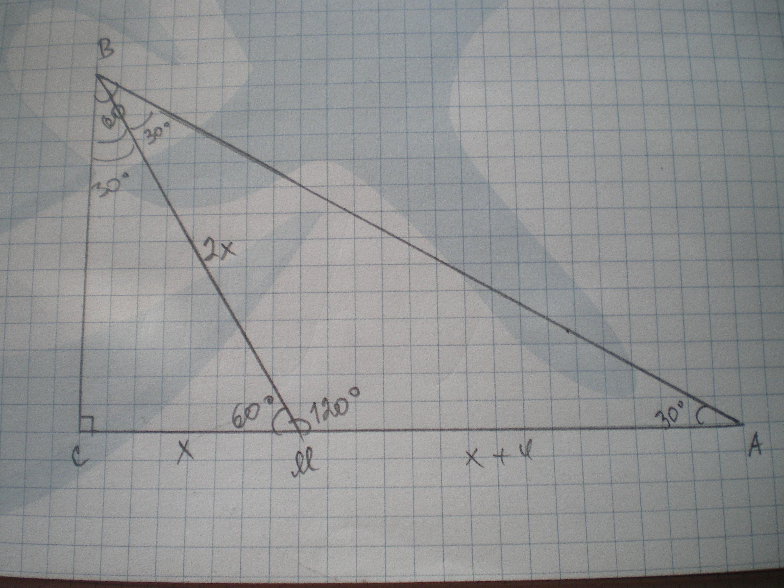 ∠МВА=180-120-30=30°, т.е. ΔМВА - равнобедренный, ВМ=АМ=2х см.