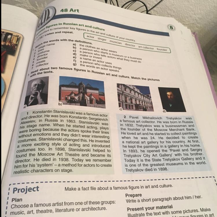 Read about two famous figures in Russia art and culture . Match the pictures with the text