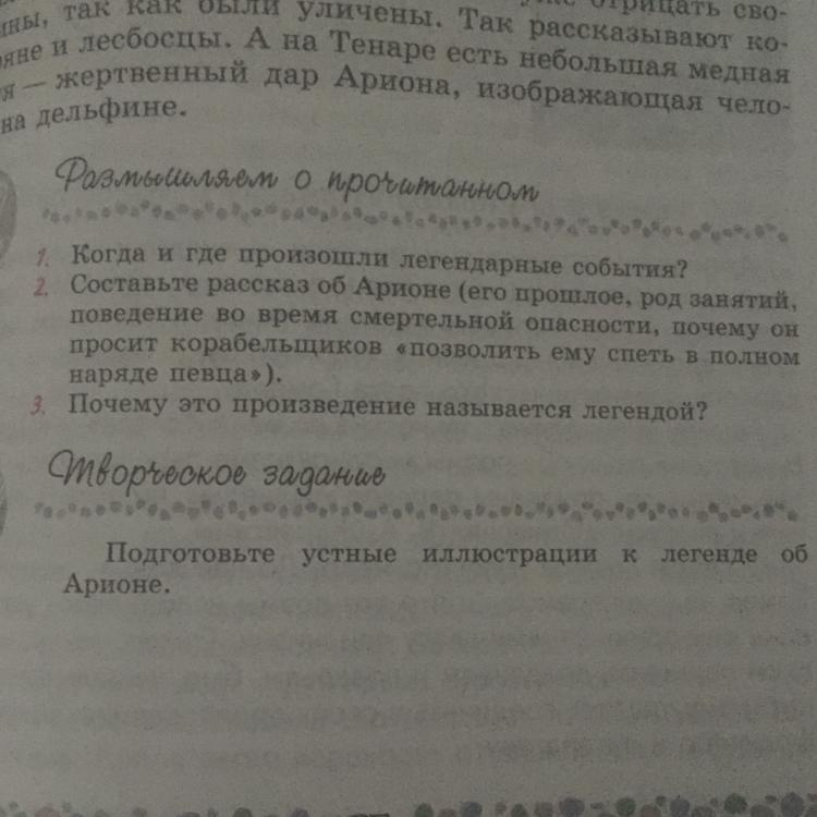 Помогите ответить на вопросы о мини рассказе, “ Легенда об Арионе»