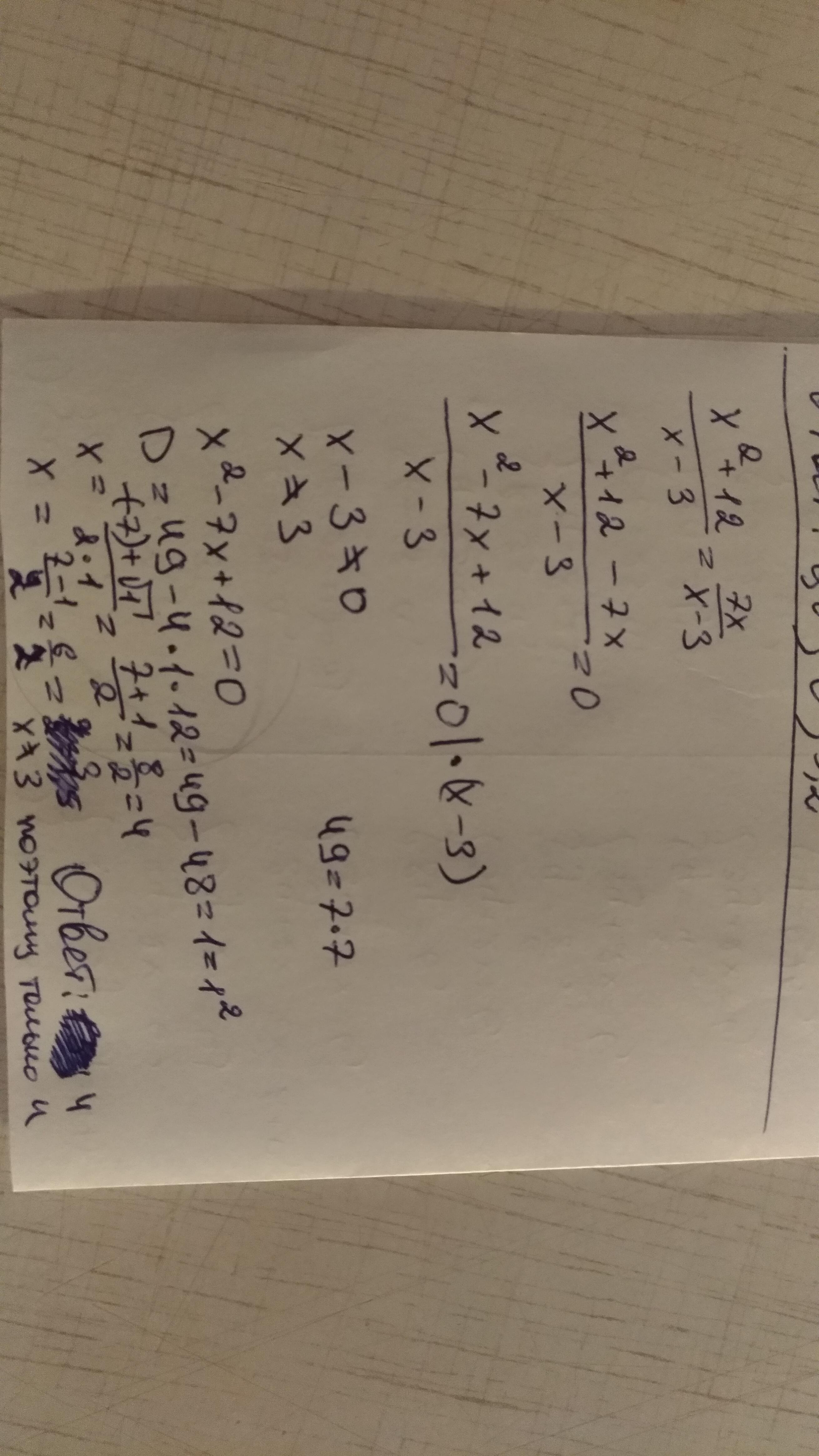 Ответ: х=4. Там где второй раз написанно х=3 это значит х≠3 и там где 7х-1/2 там должен быть второй стойбик 7х+1/2. Удачи тебе в учёбе