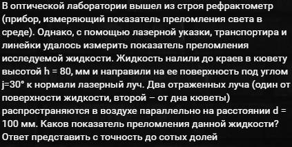 имея в виду угол между лучом и горизонталью. тогда получается n=1,11