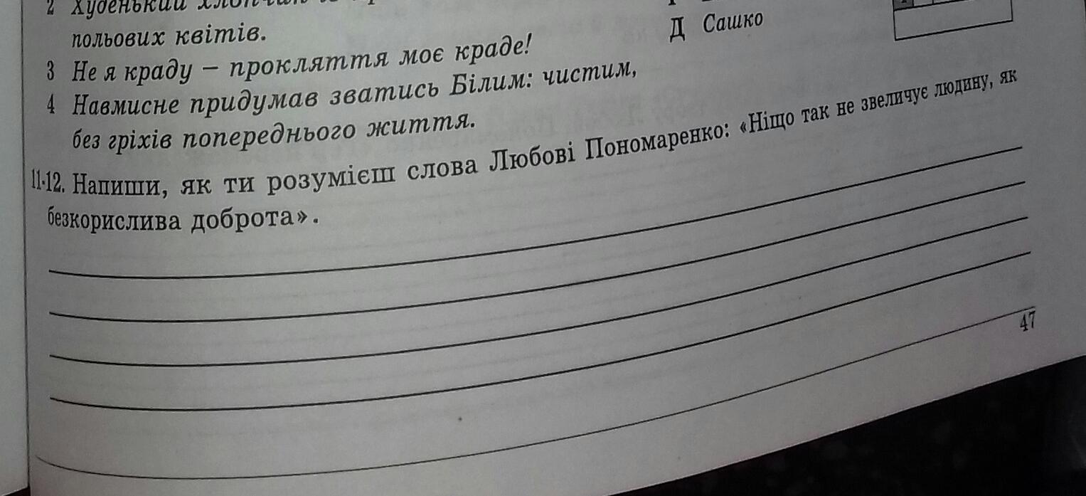Ответ: Цими словами Любов намагається донести до нас, що доброта в нашому світі надзвичайно важлива, сосбливо якщо ти не очікуєш нічого взамін)