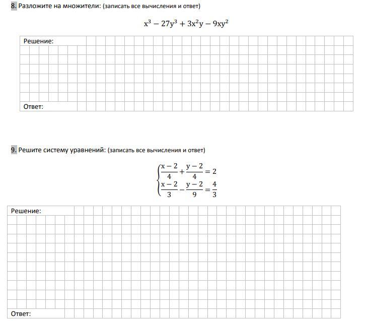 1) x³ - 27y³ + 3x²y - 9xy² = (x³ - 27y³) + (3x²y - 9xy²) =