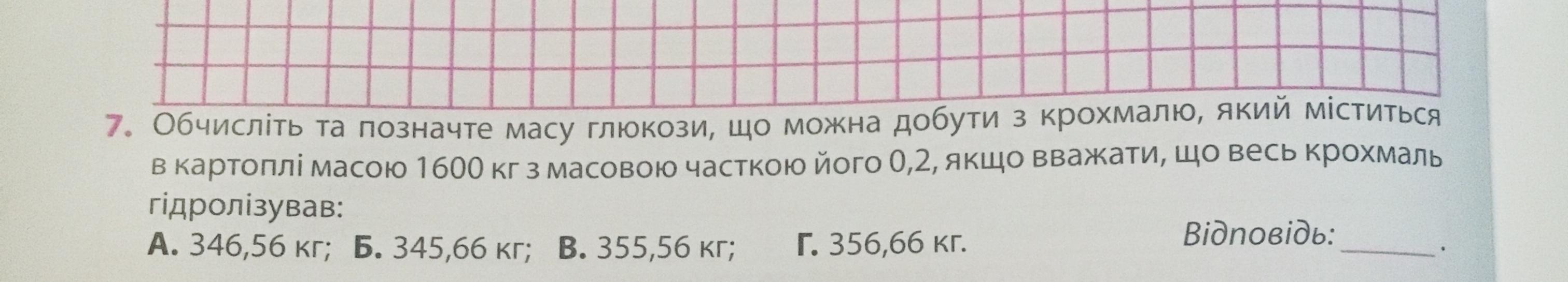 Розрахуємо молярну масу мономера крохмалю та глюкози: