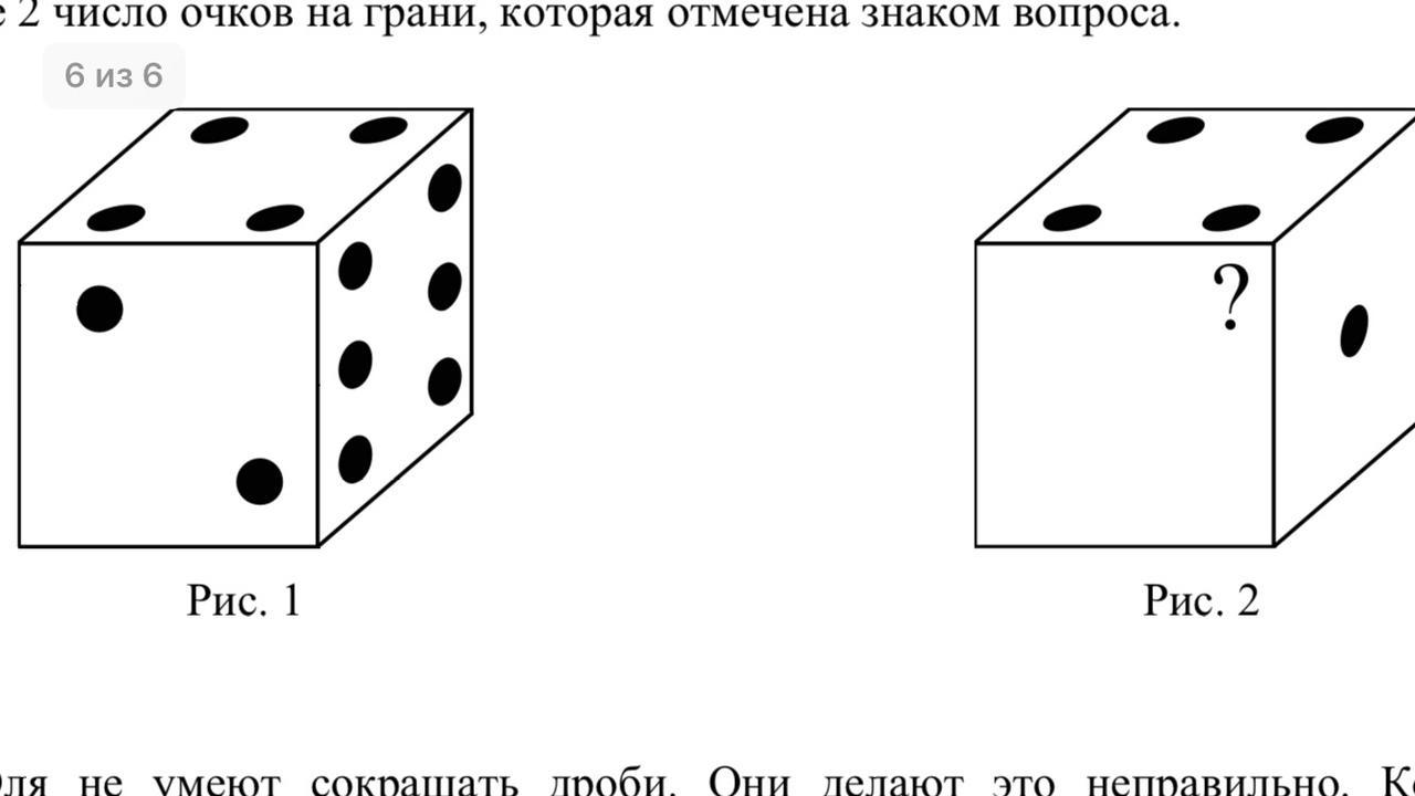 на рис 1 изображён игральный кубик на рис 2 этот же кубик напишите на рис 2 число очков грани которая отмечена знаком вопроса