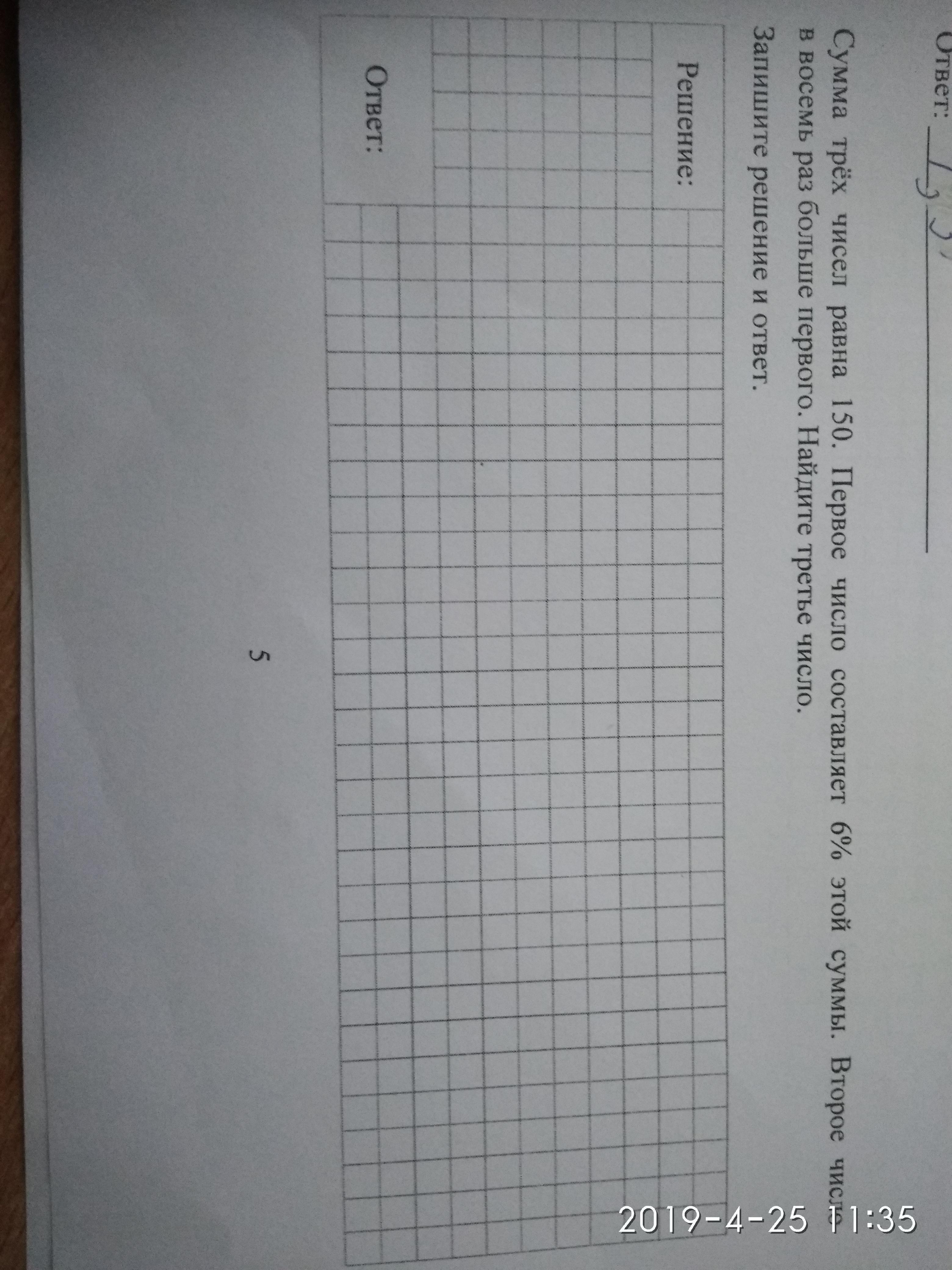 Первое число по условию 150*6%/100%=9, второе 8*9=72, тогда третье 150-9-72=69 -ответ