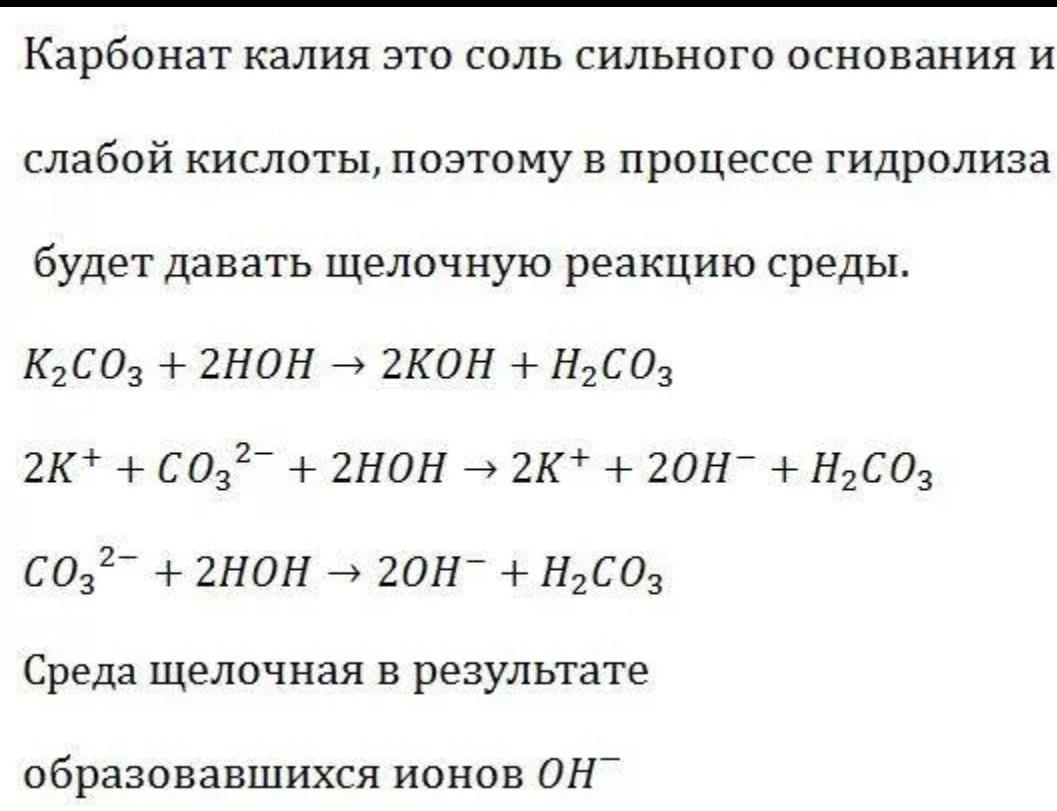 гидролиз , карбон калия на фото.