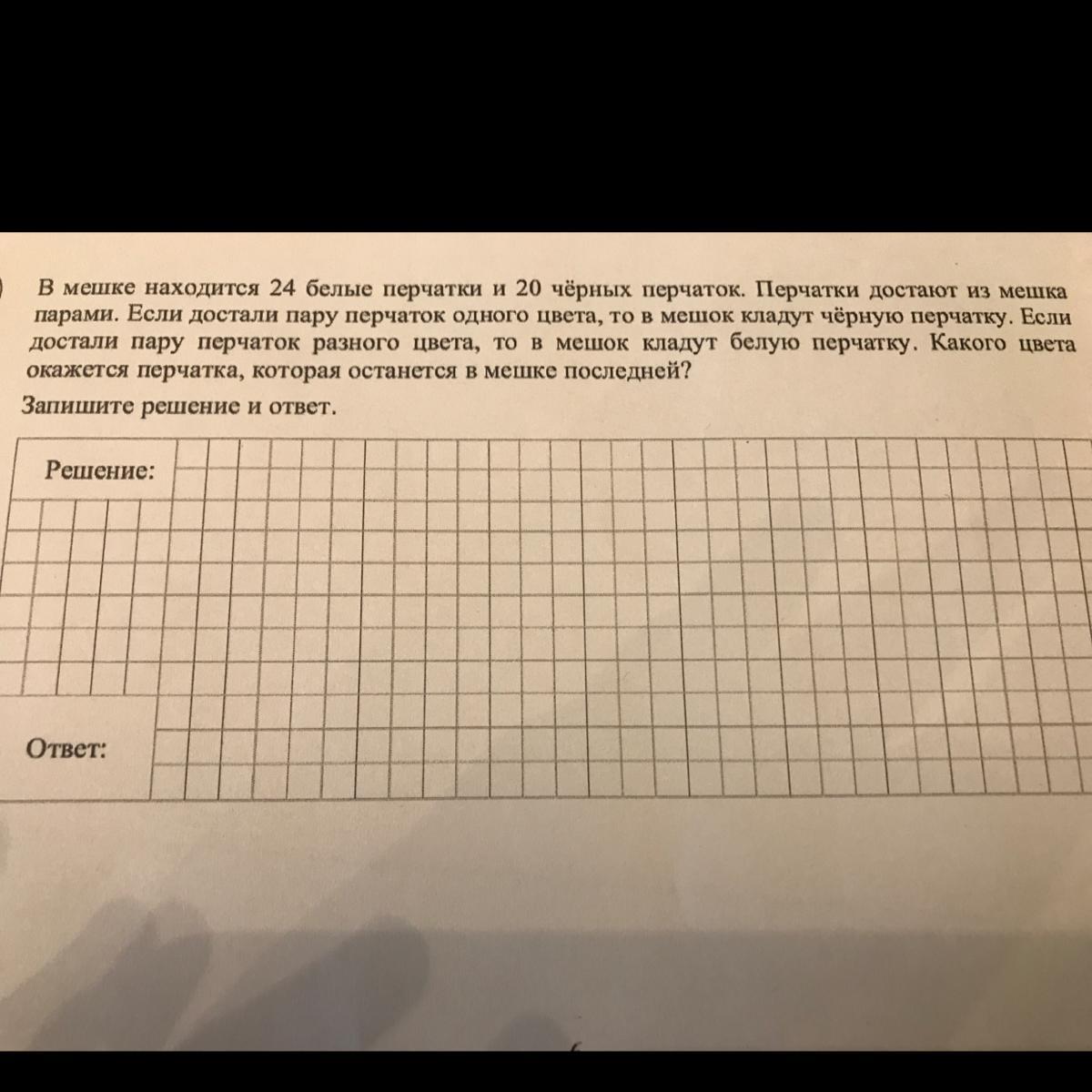 Пошаговое объяснение: Нельзя достать нечетное количество белых перчаток. Если белая-белая, белых -2 шт, если черная-черная кол-во белых не изменится, если белая-черная кол-во белых в мешке тоже не изменится, потому что белую мы вернем обратно. Изначально белых четное кол-во, поэтому одна остаться не может