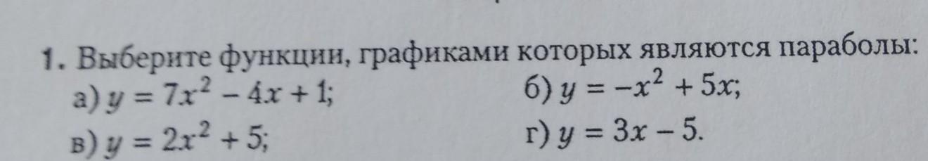 Ответ: графиками функции под номерами А), Б), В) является парабола.