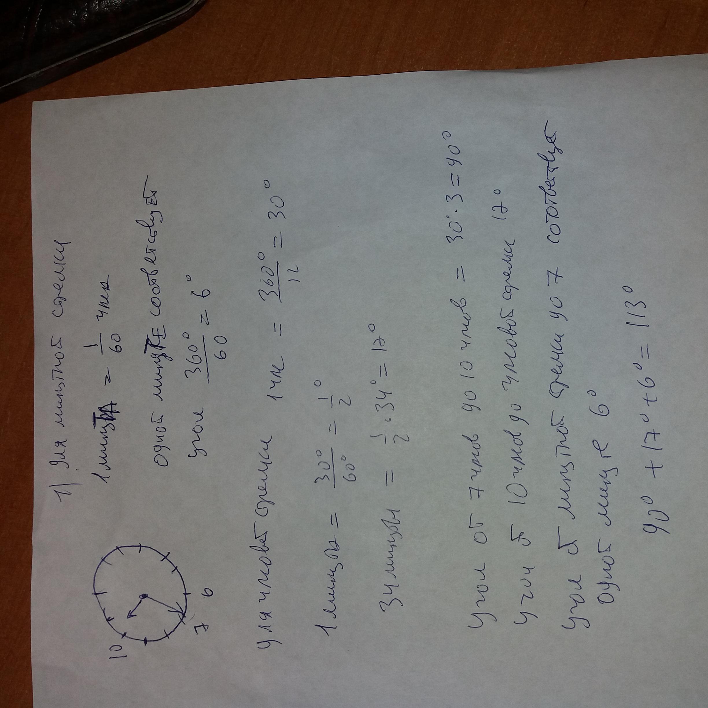 Сколько градусов составляет угол между минутой и часовой стрелками в 10 часов 34 минуты