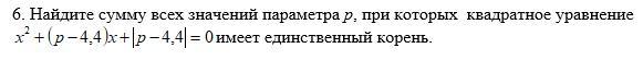 Найдите сумму всех значений параметра p, при которых квадратное уравнение имеет единственный корень.