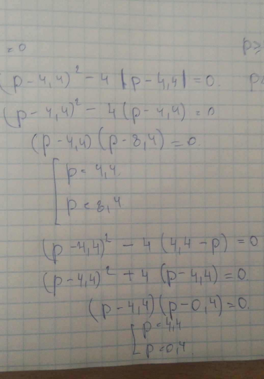(p-4.4)² (p-4.4+4)(p-4.4-4)=0