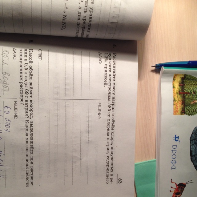 Рассчитайте массу натрия и объем хлора , полученных в результате элктролиза 585кг хлорида натрия , содержащего 12% примеси