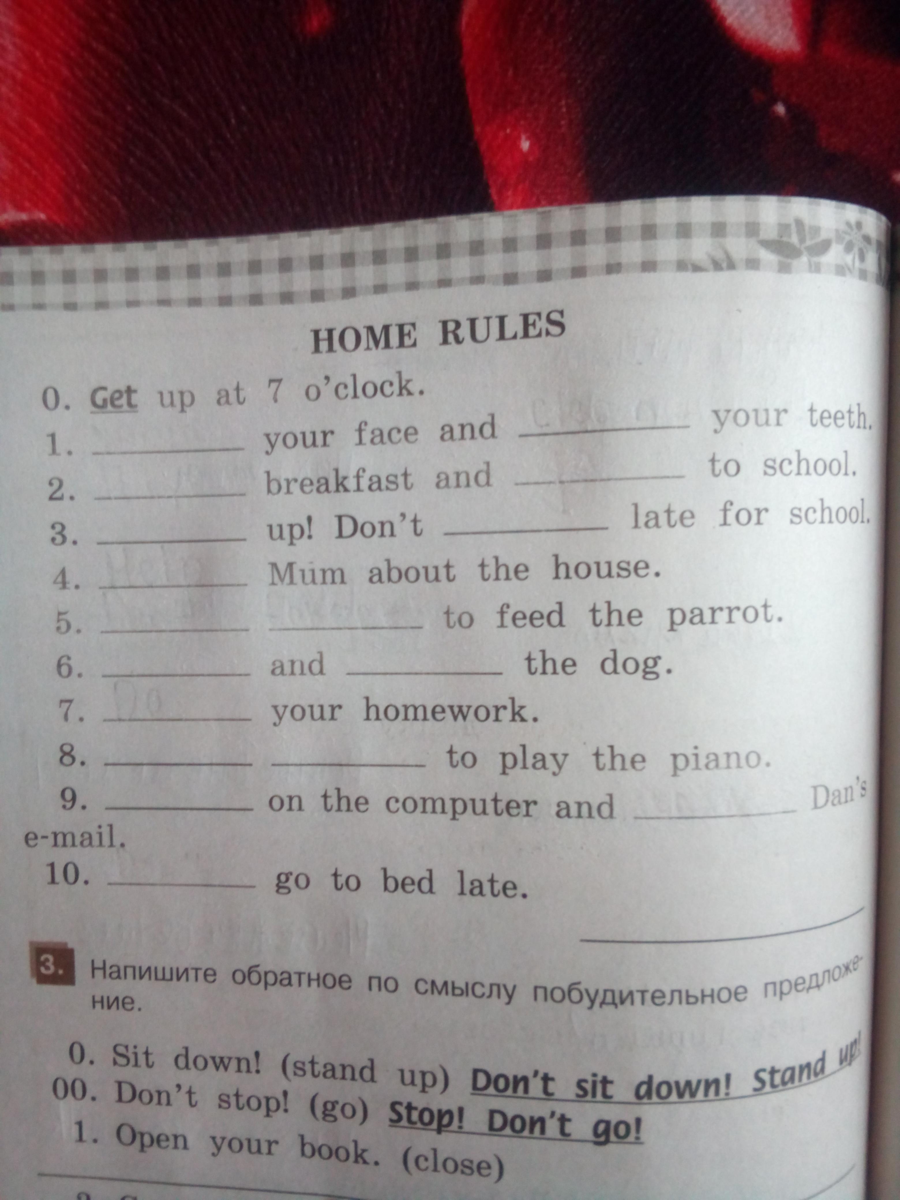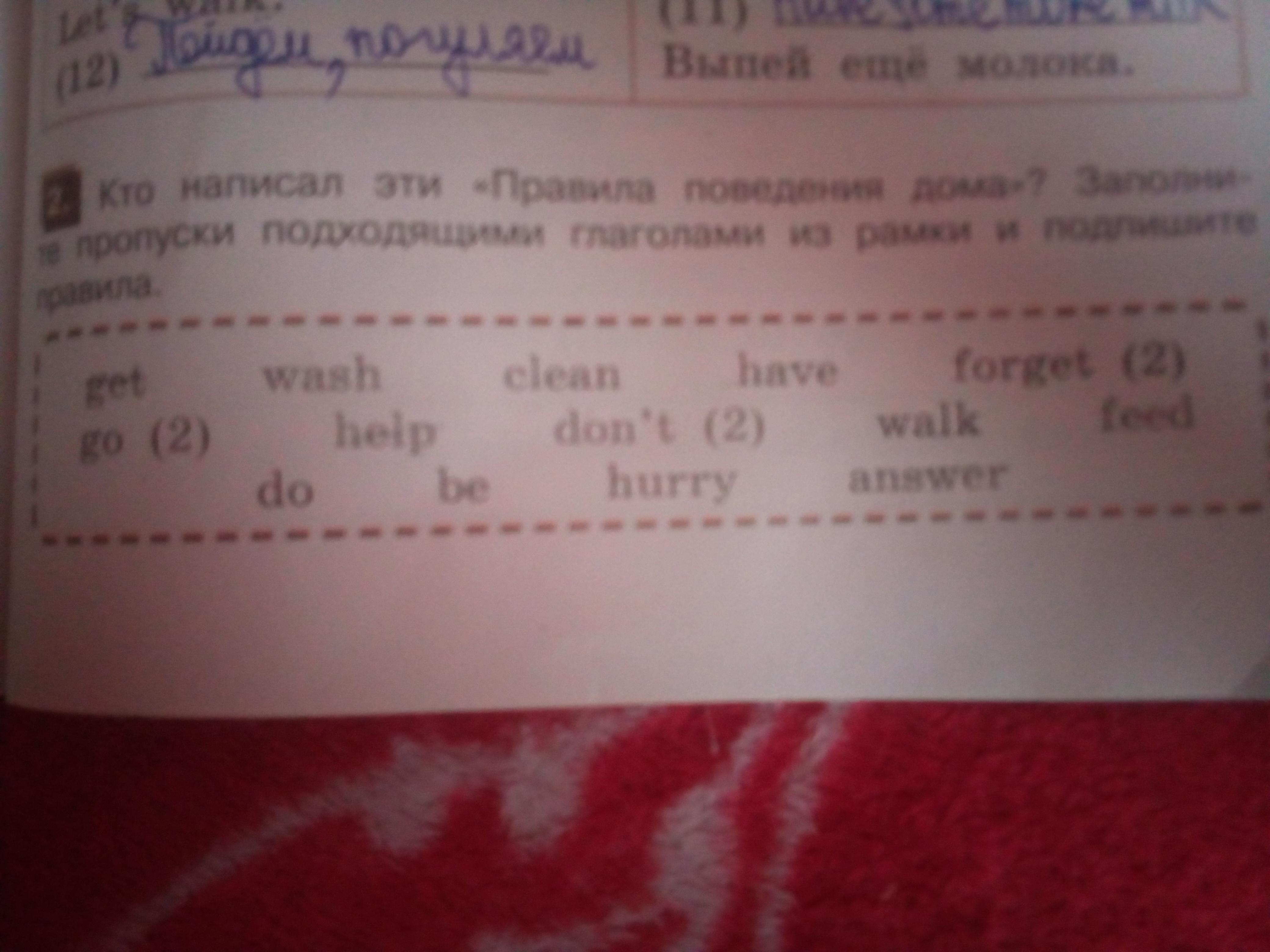 Wash,clean,have,go,hurry,be, help,don't forget ,go and walk,do,don't forget ,get and answer,don't.