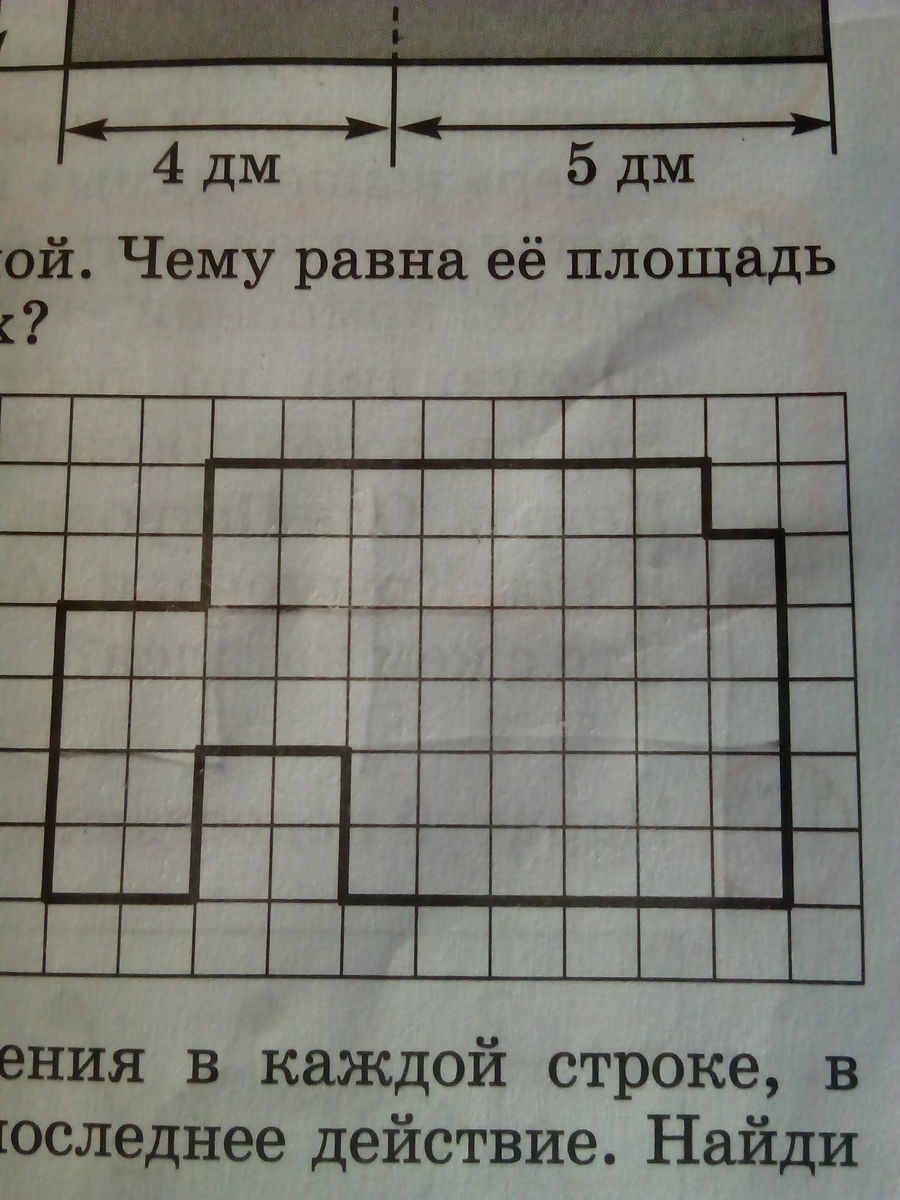 Помогите, пожалуйста, решить задачу для 3 класса. Построй в тетради фигуру, равную данной. Чему равна ее площадь в квадратных сантиметрах? В клеточках?
