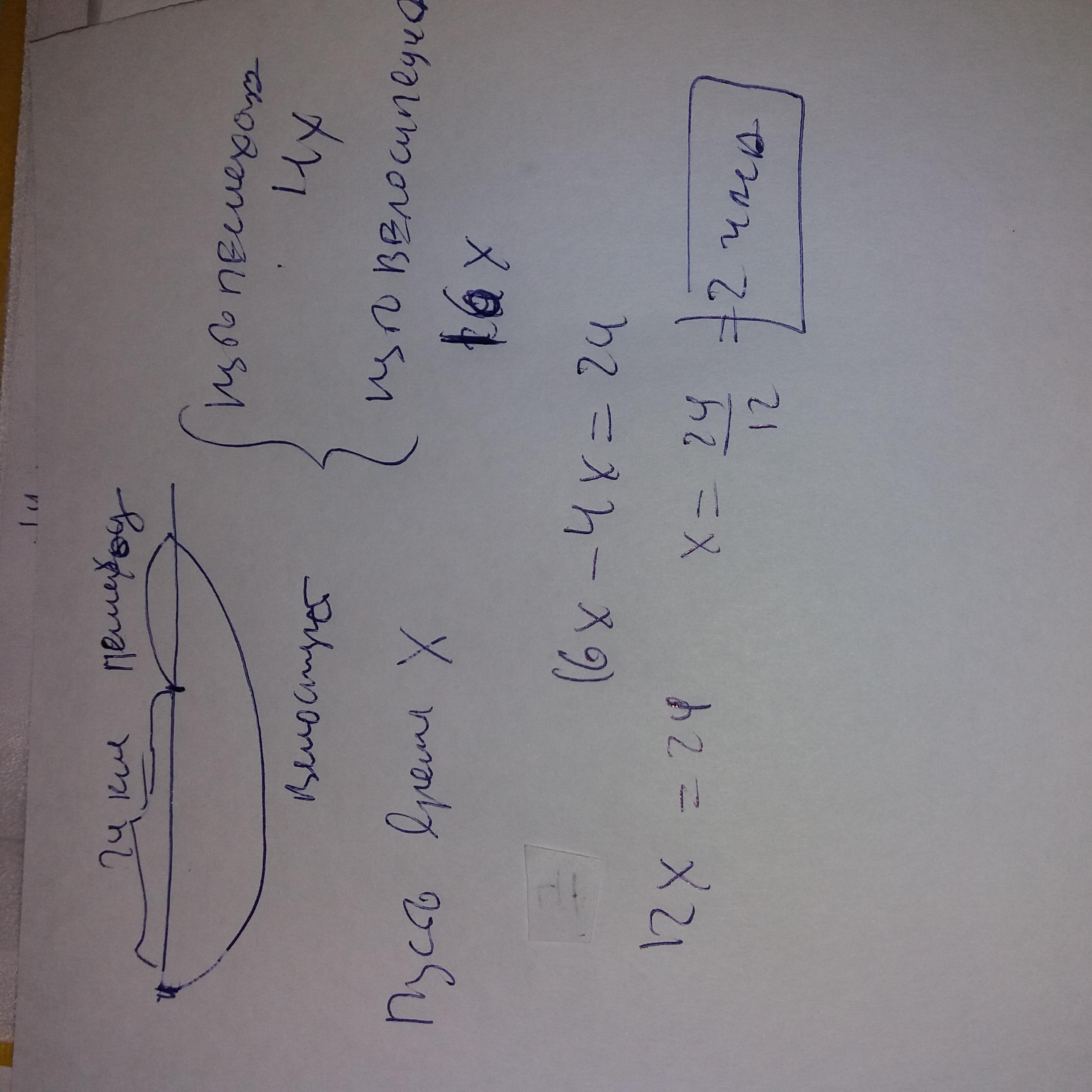 Из двух поселков расстояние 24км, выехал велосепедист и пешеход.