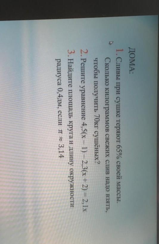 70 : 0,35 = 200кг свежих слив надо взять чтобы получить 70кг сушеных