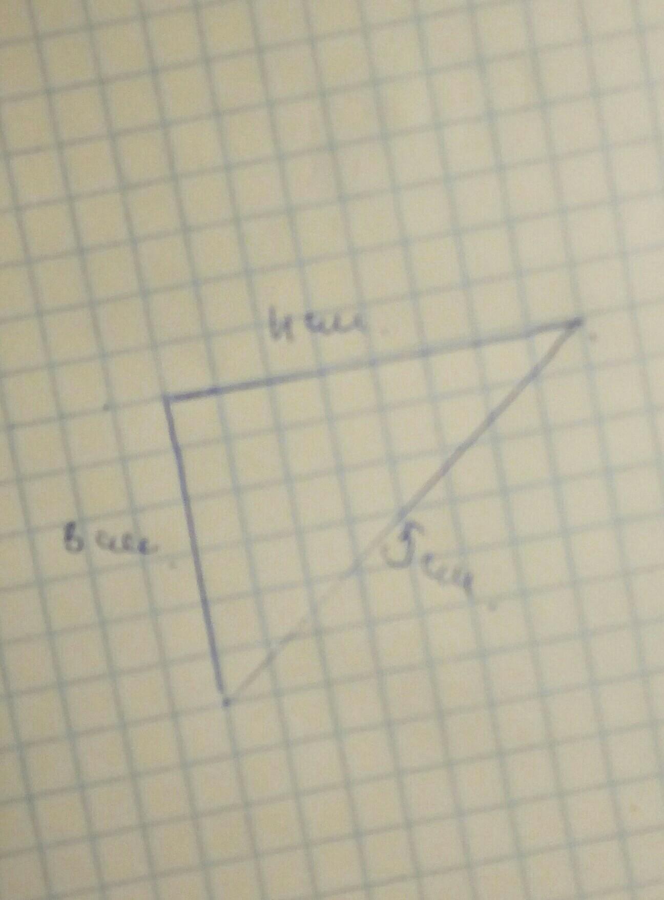 Это будет прямоугольный треугольник с катетами 3 и 4 , а гипотенузой 5