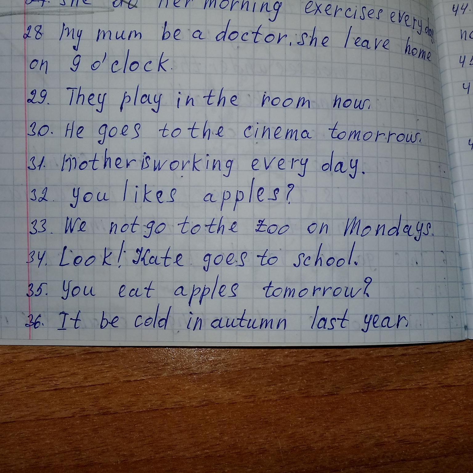 28. My mom is a doctor; she leaves home at 9 o'clock.