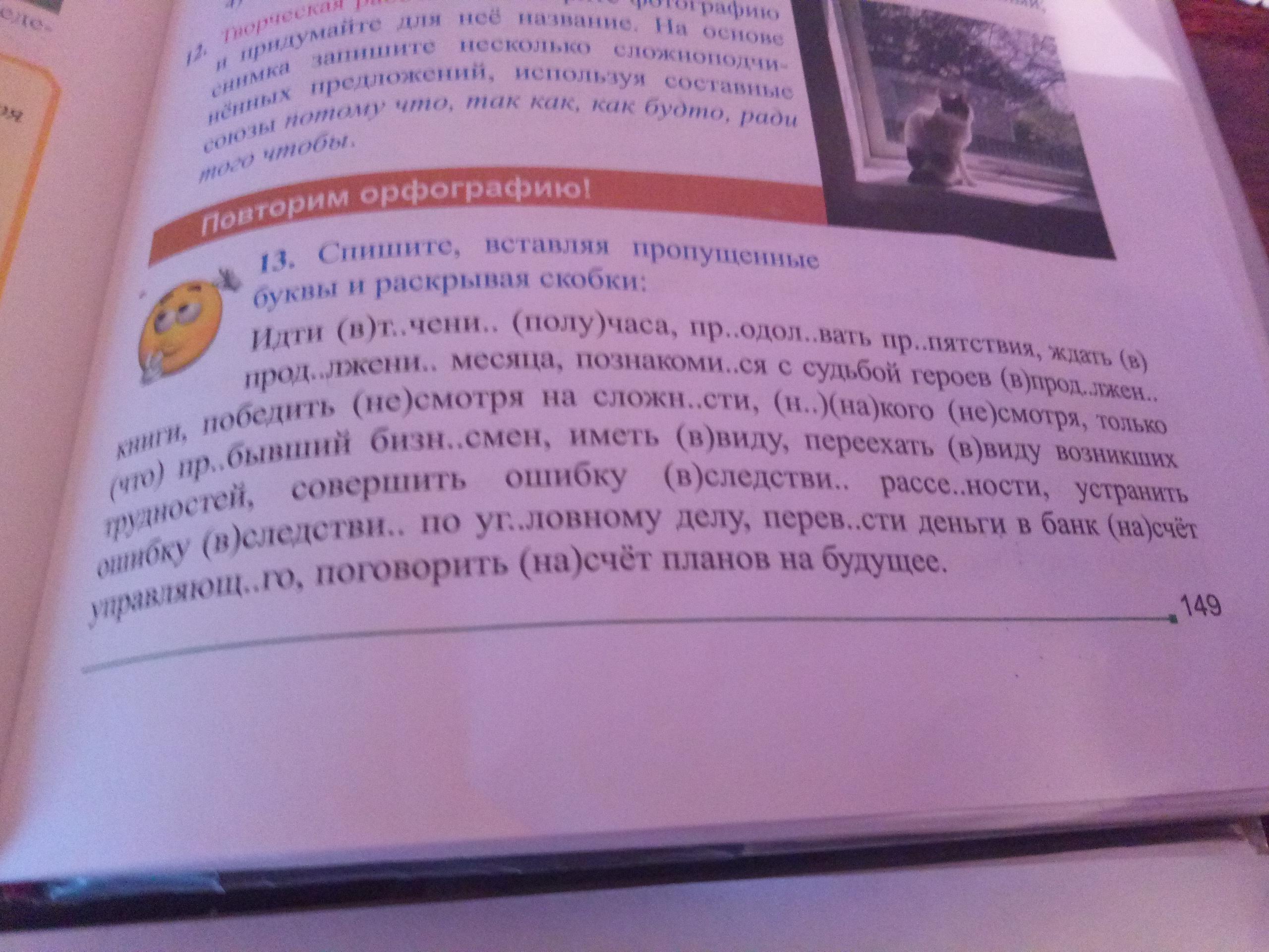 Идти в течение получаса, преодолевать препятствия, ждать в продолжение месяца, познакомиться с судьбой героев в продолжении книги, победить несмотря на сложности, ни на кого не смотря, только что прибывший бизнесмен, иметь ввиду, переехать ввиду возникших трудностей, совершить ошибку вследствие рассеянности, устранить ошибку в следствии по уголовному делу, перевести деньги в банк на счёт управляющего, поговорить насчёт планов на будущее. Не за что)