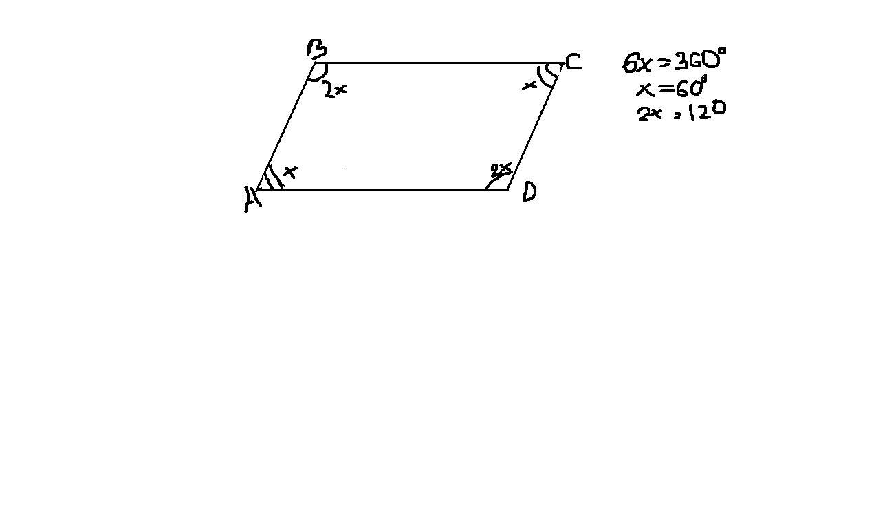 Один угол парал-ма в 2 раза больше другого. Найти меньший угол?