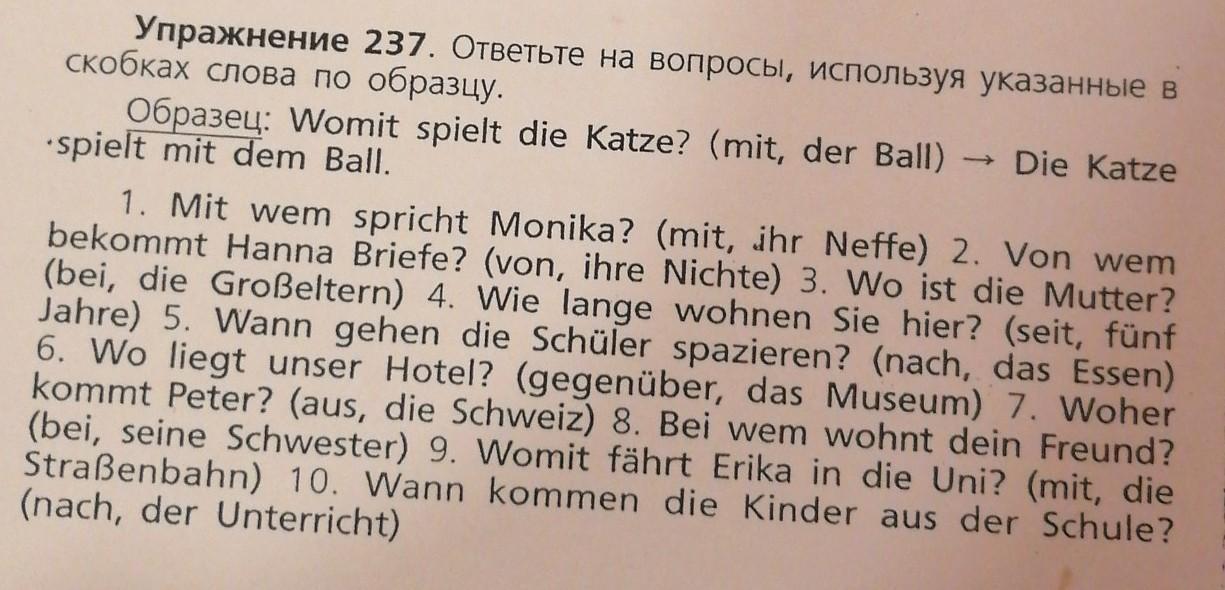 Упражнение 237. Ответьте на вопросы, используя указанные в