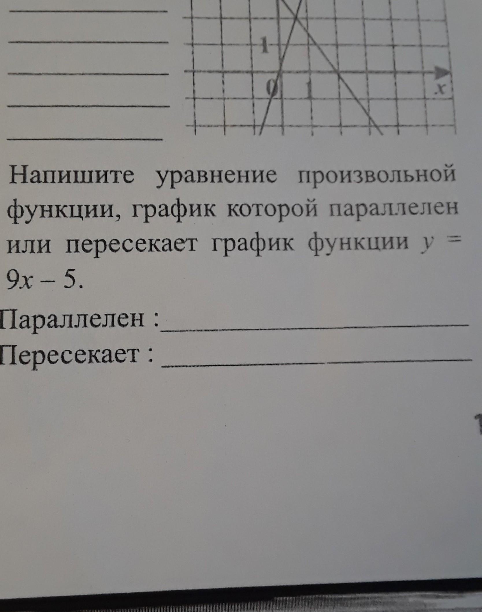 пересекает двоеточие если угловой коэффициент не равен 9, то есть y=10x-5 или y=1000000x-1567