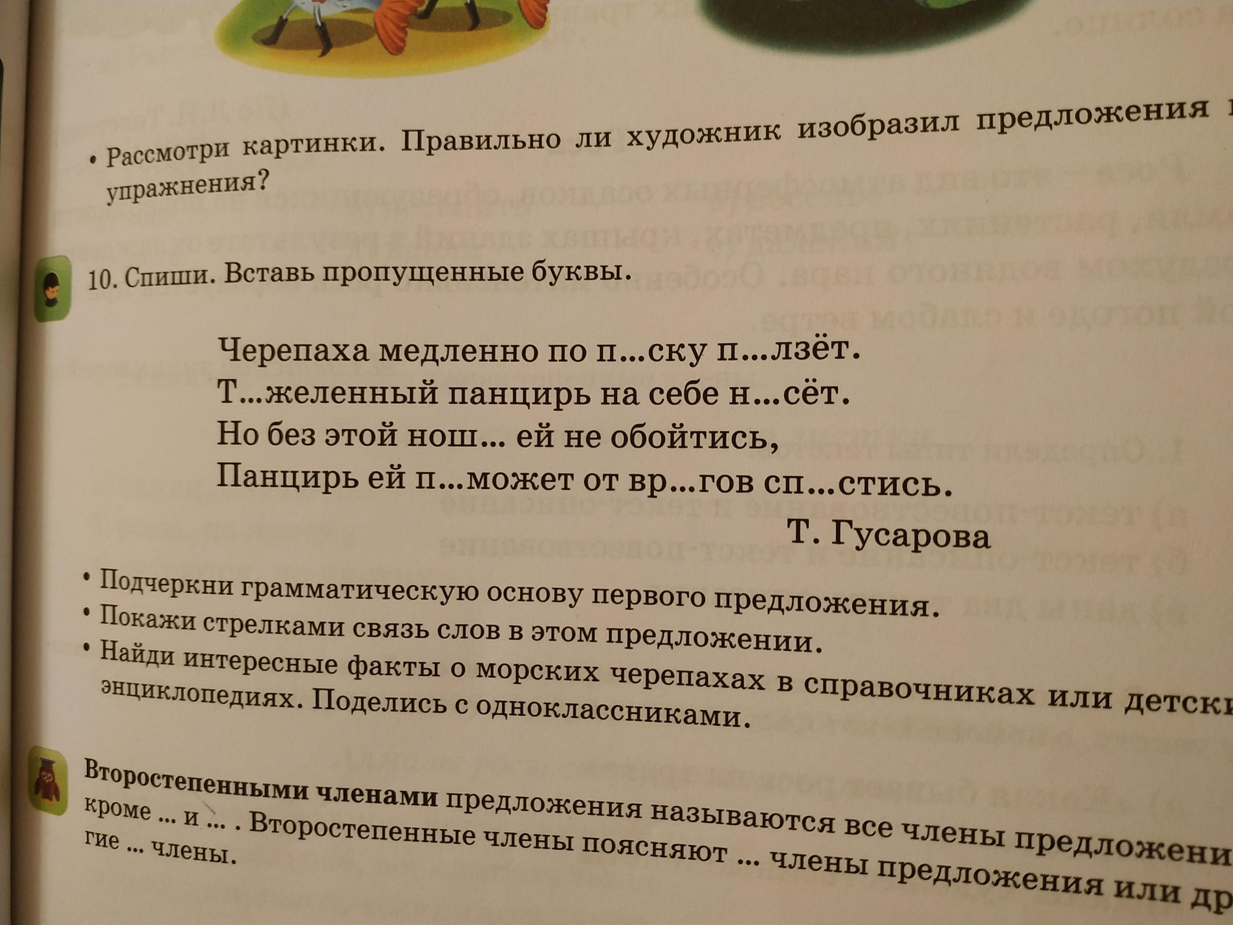 Ответ: нужно подчеркнуть черепаха одной чертой, а ползёт двумя чертами.
