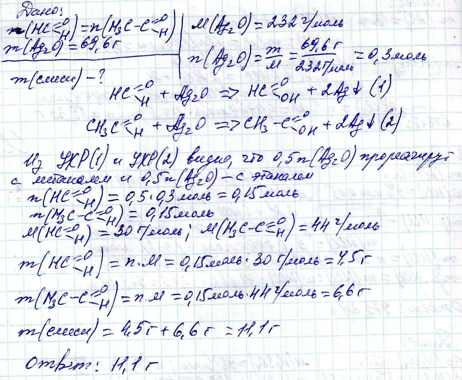 Эквимолярная смесь метаналя и этаналя полностью реагирует с 69.6 г оксида серебра ( в аммиачном растворе). Вычислите массу этой смеси.