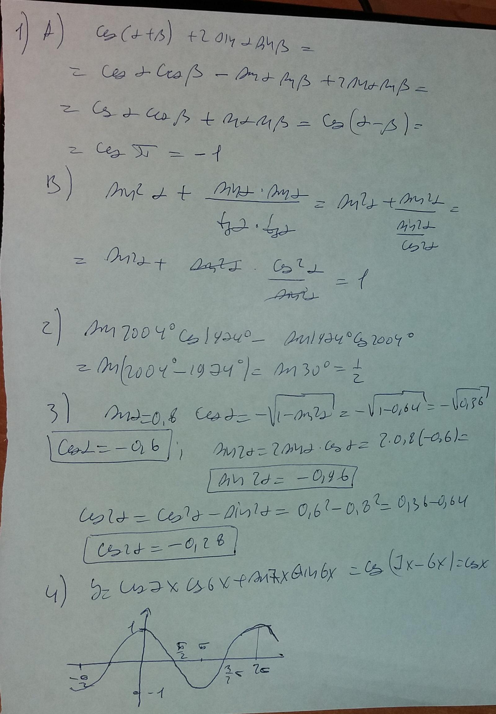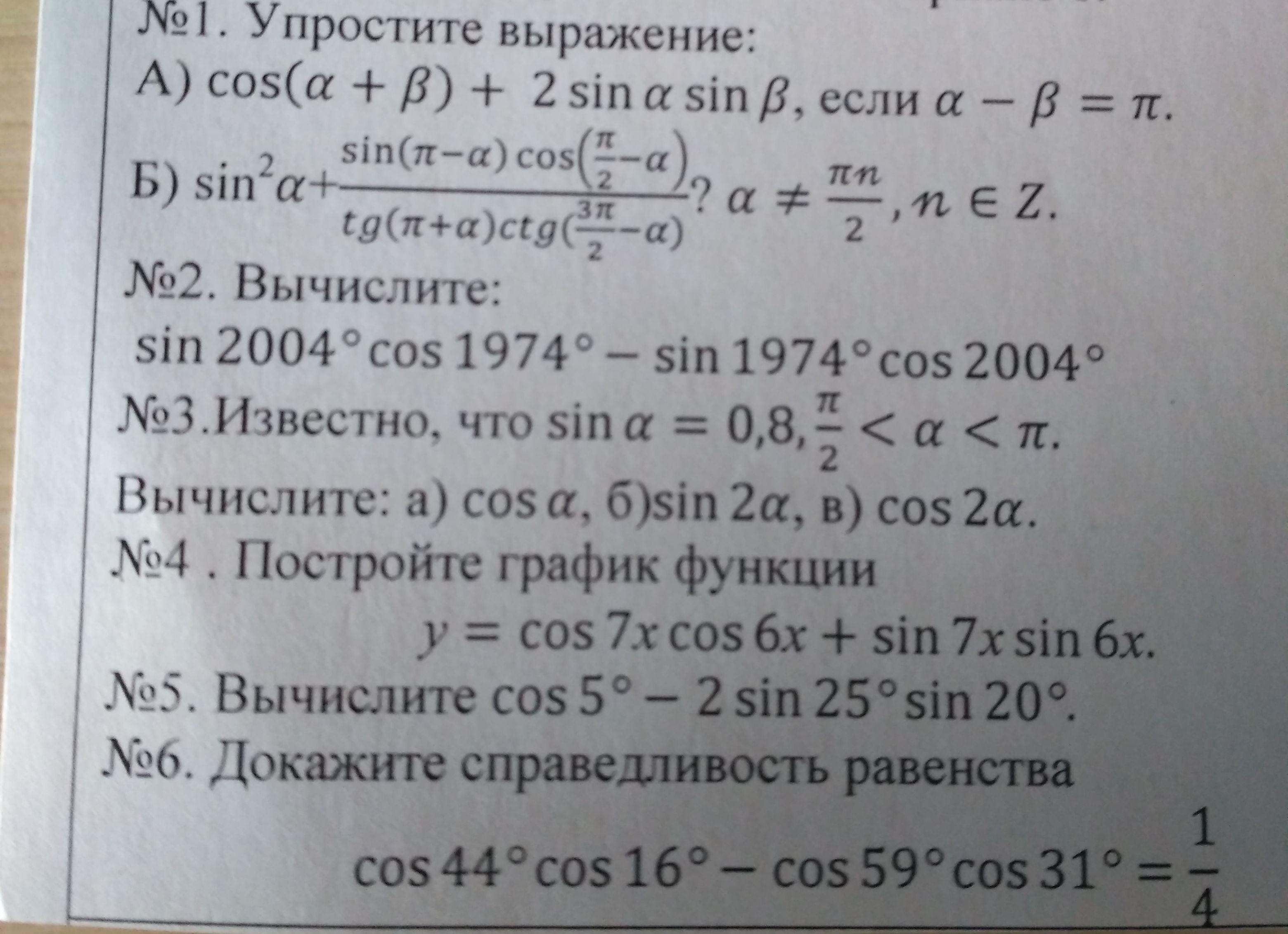 Решите 6 заданий на тему:" Формулы сложения. Тригонометрические функции числового аргумента"