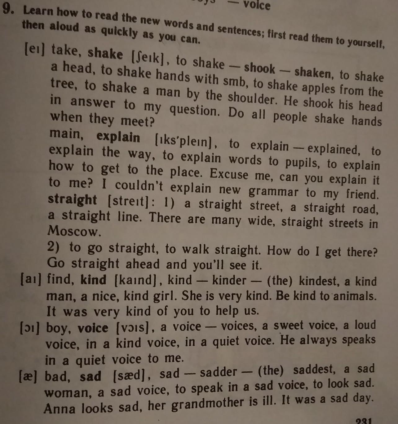 Q узнайте, как читать новые слова и предложения; сначала прочитайте их сами,